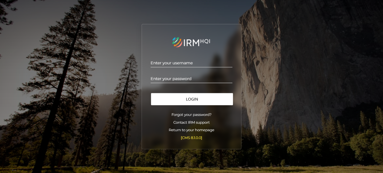 2. Once you have successfully logged into HQi, you will see a "Welcome to IRM HQi" dashboard, as per the screenshot below.